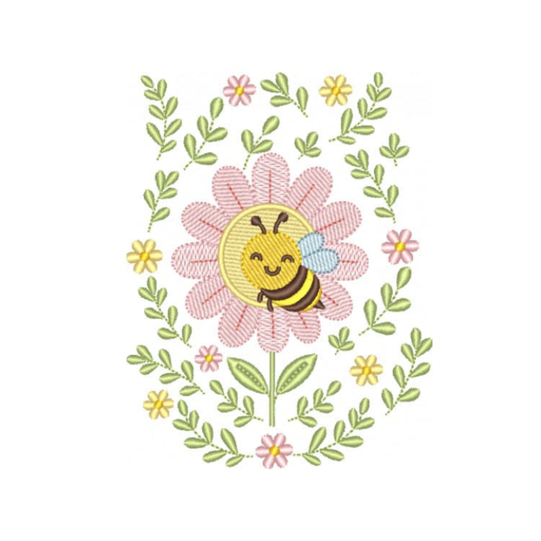 Abelha com Floral18, matrizes de bordados é um produto virtual, desenvolvidas em pontos leves e detalhes em pontos cheio, compatíveis com vários modelos de máquinas, PES – JEF – EXP – XXX – DST,  Ideal para bordar em variados tipos de peças. A liberação das matrizes ocorre automaticamente após a confirmação do pagamento, basta acessar a área de cliente aqui no site e ir na aba de downloads,