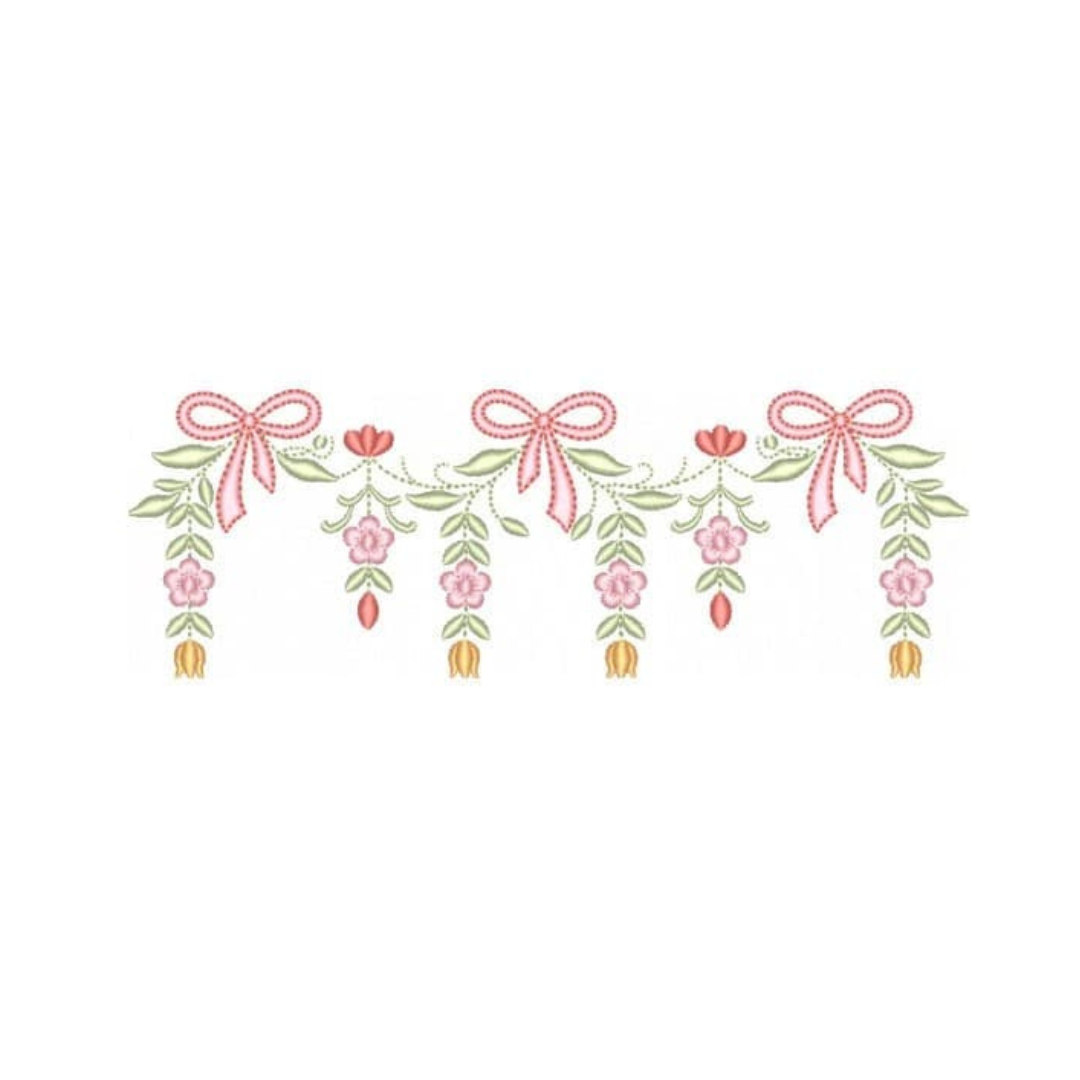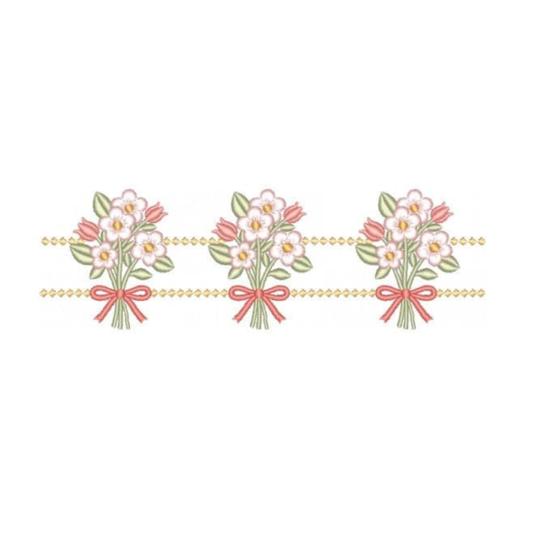 Coleção com 05 matriz de Barrados com Flores7, matrizes de bordados é um produto virtual, desenvolvidas em pontos leves e detalhes em pontos cheio, compatíveis com vários modelos de máquinas, PES – JEF – EXP – XXX – DST, Ideal para bordar em variados tipos de peças. A liberação das matrizes ocorre automaticamente após a confirmação do pagamento, basta acessar a área de cliente aqui no site e ir na aba de downloads,