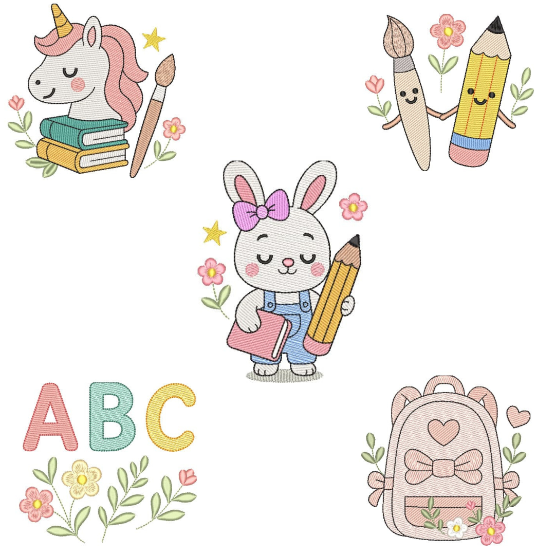 Coleção-Volta às Aulas8, matrizes de bordados é um produto virtual, desenvolvidas em pontos leves e detalhes em pontos cheio, compatíveis com vários modelos de máquinas, PES – JEF – EXP – XXX – DST, Ideal para bordar em variados tipos de peças. A liberação das matrizes ocorre automaticamente após a confirmação do pagamento, basta acessar a área de cliente aqui no site e ir na aba de downloads,