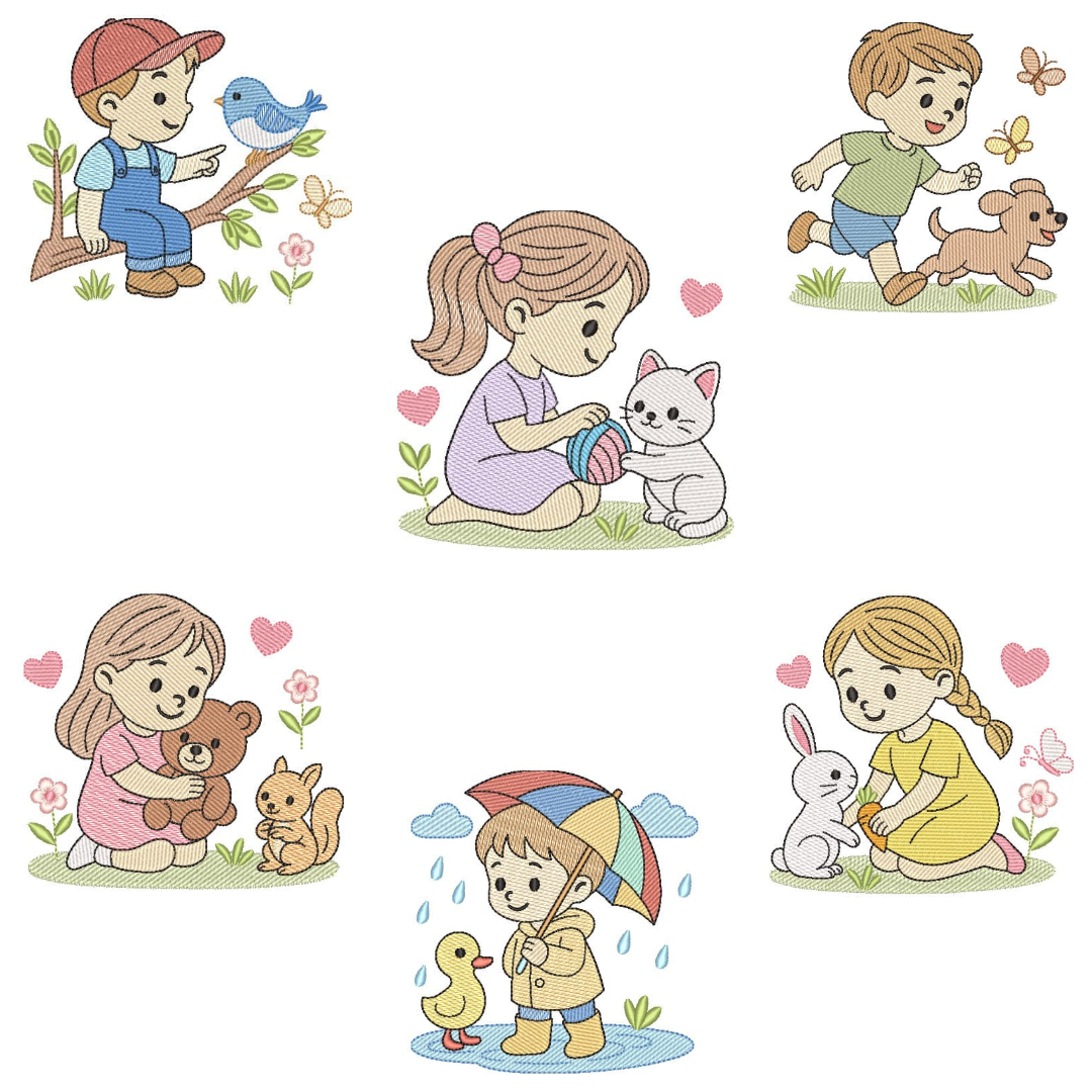 Coleção com 06 matriz de Crianças com Animaizinhos