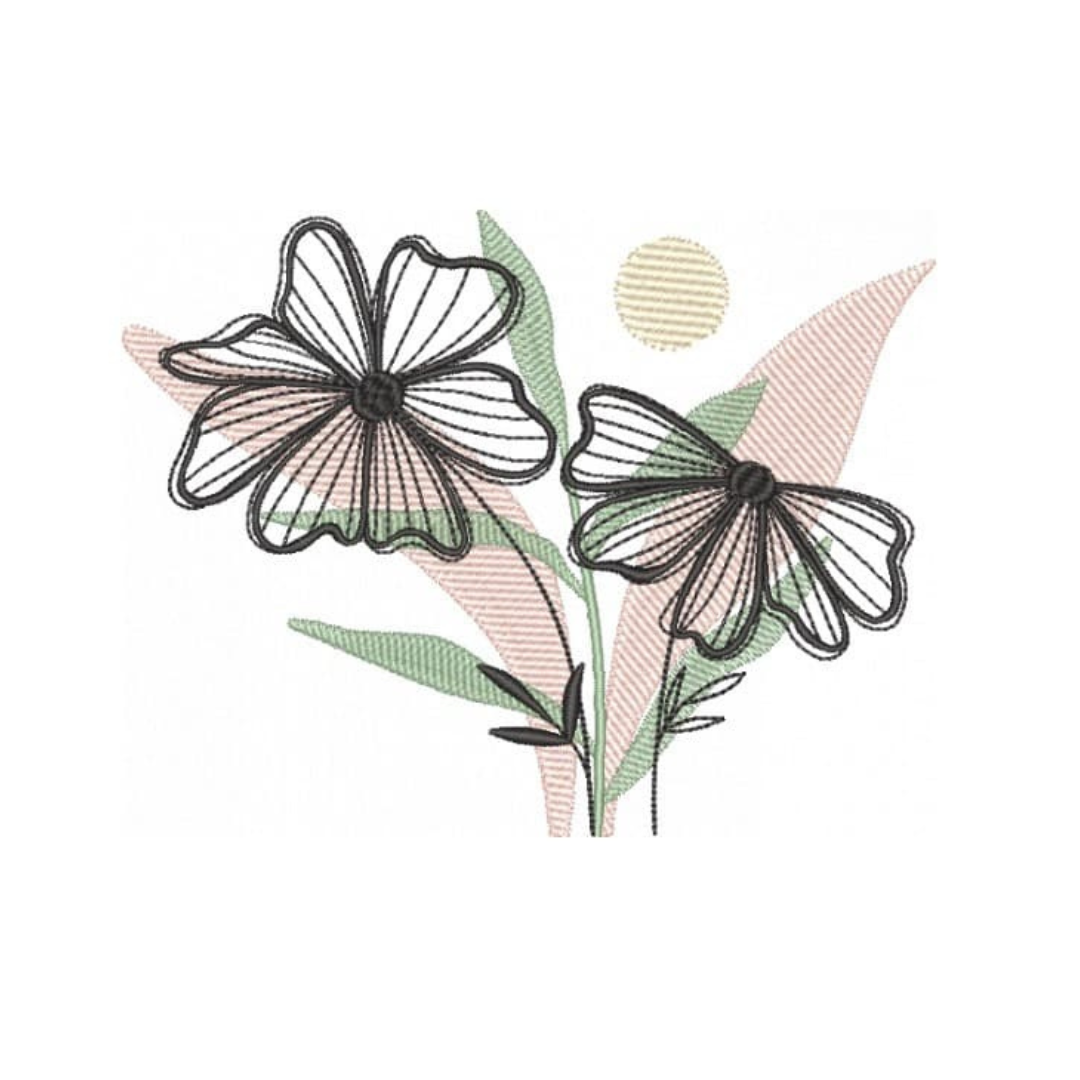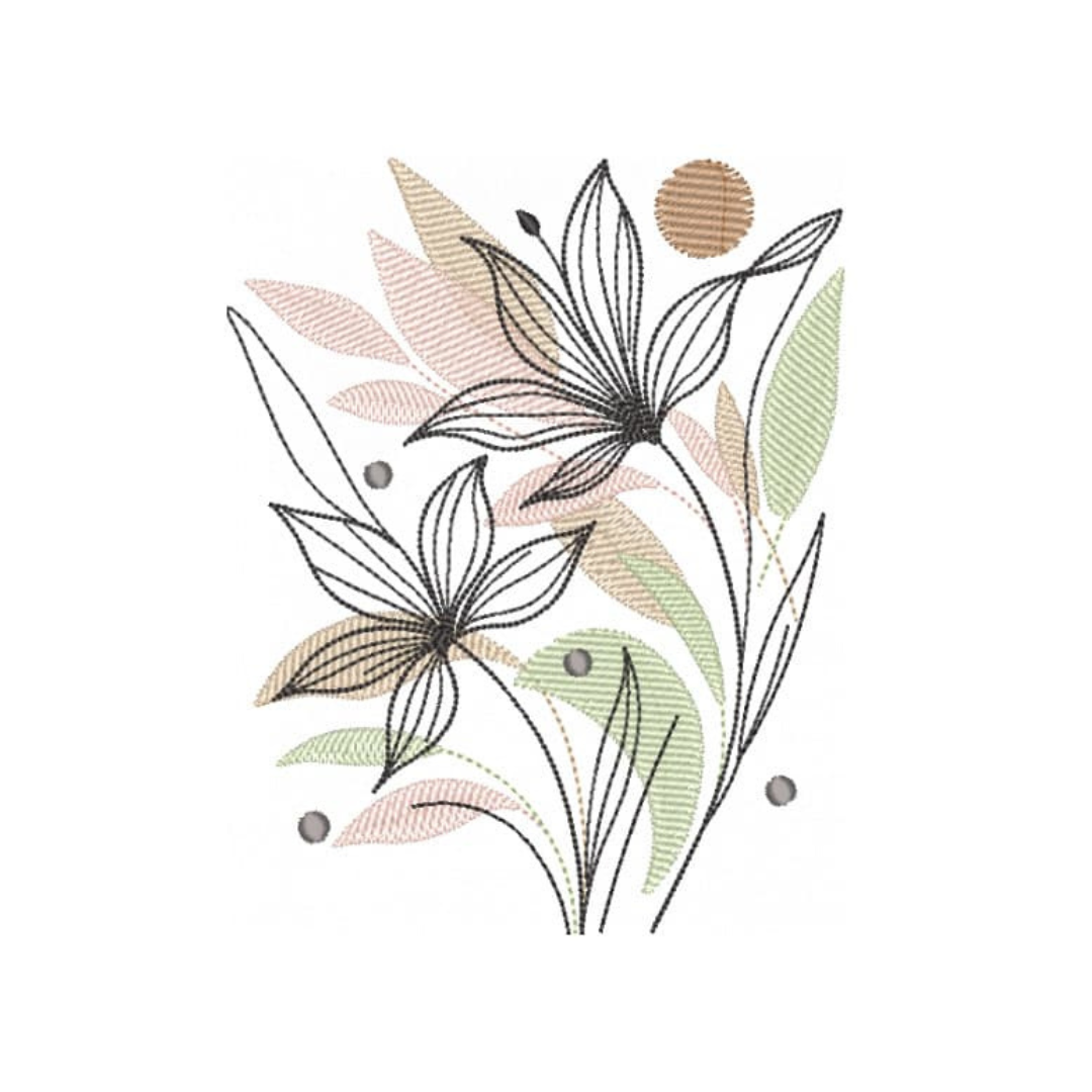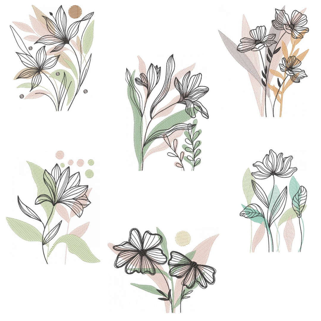 Coleção com 06 matriz de Flores Abstratas, matrizes de bordados é um produto virtual, desenvolvidas em pontos leves e detalhes em pontos cheio, compatíveis com vários modelos de máquinas, PES – JEF – EXP – XXX – DST,  Ideal para bordar em variados tipos de peças. A liberação das matrizes ocorre automaticamente após a confirmação do pagamento, basta acessar a área de cliente aqui no site e ir na aba de downloads,