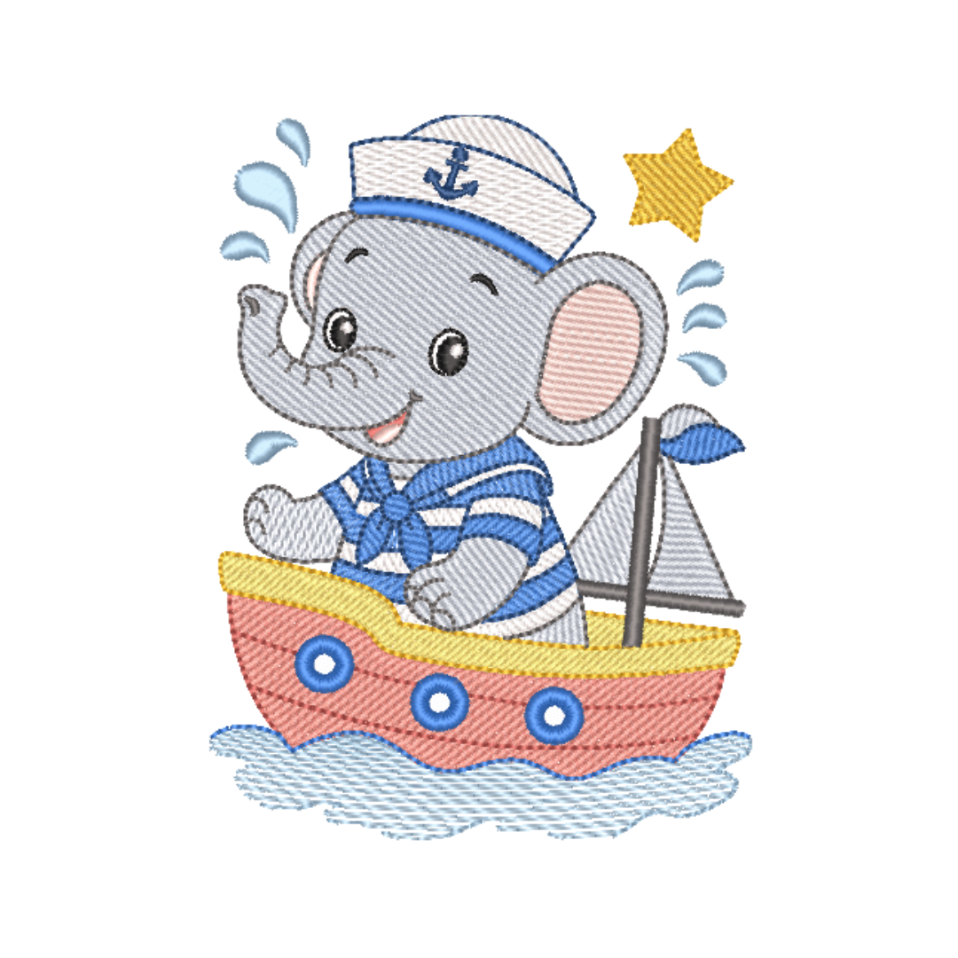 Elefante no Barco, matrizes de bordados é um produto virtual, desenvolvidas em pontos leves e detalhes em pontos cheio, compatíveis com vários modelos de máquinas, PES – JEF – EXP – XXX – DST, Ideal para bordar em variados tipos de peças. A liberação das matrizes ocorre automaticamente após a confirmação do pagamento, basta acessar a área de cliente aqui no site e ir na aba de downloads,